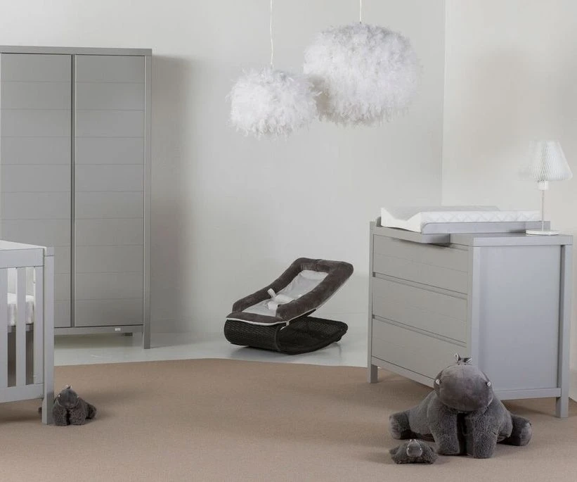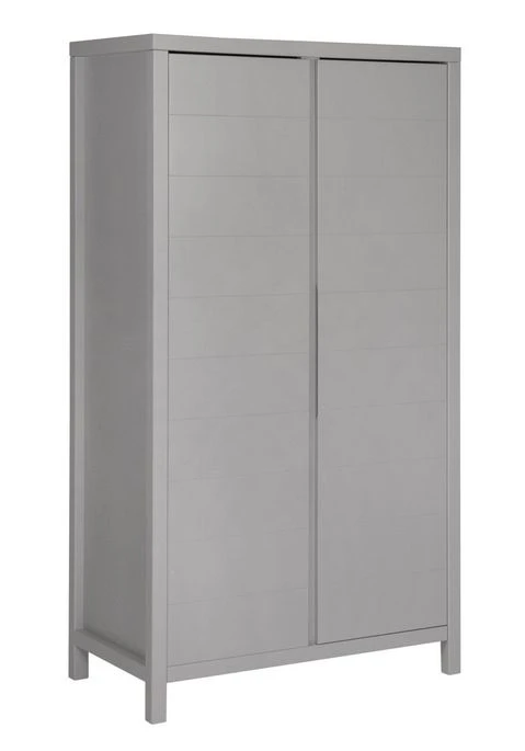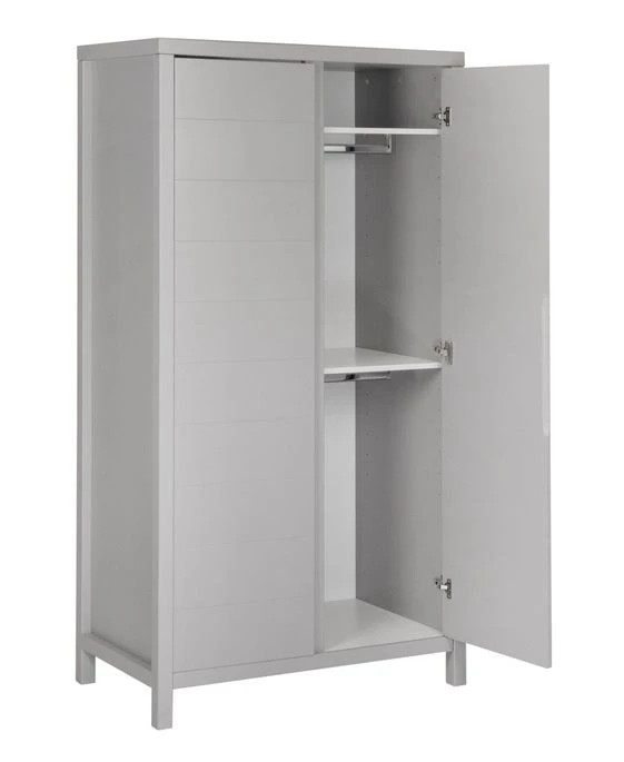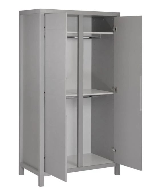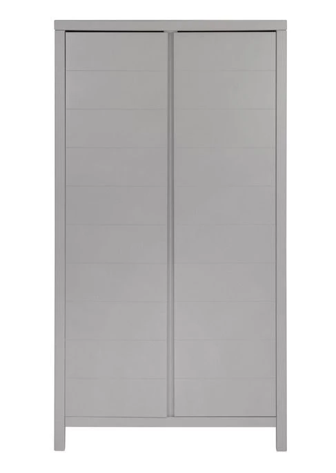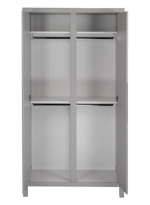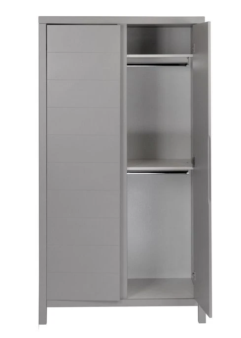 Faite en bois MDF mélaminé gris, sa structure est dotée de 2 portes ouvrant sur 2 tringles et 2 étagères.