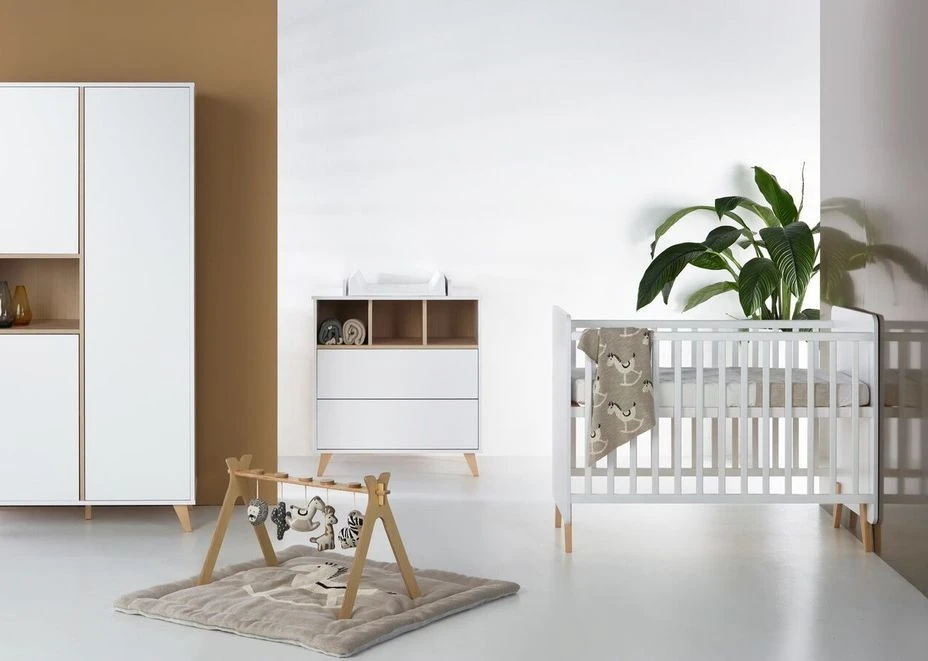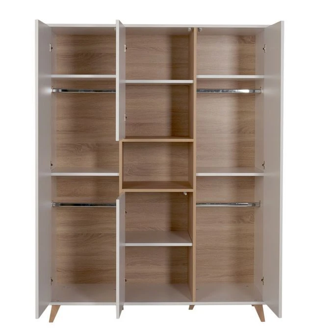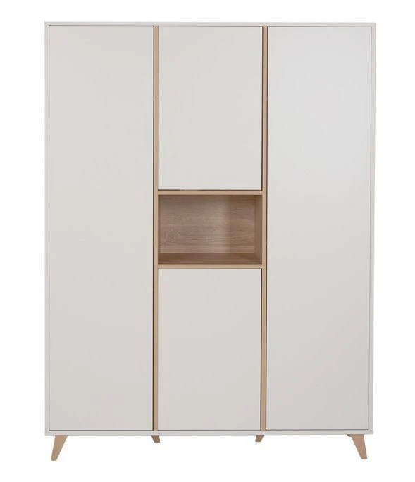 Faite en bois MDF mélaminé blanc sur des pieds solides en hêtre massif, sa structure est dotée de 4 portes ouvrant sur 2 tringles et 4 étagères.