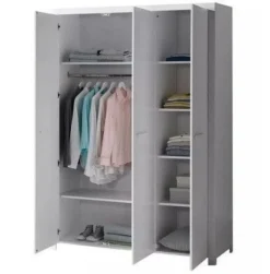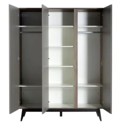 Armoire 3 Portes Laqué Gris Et Pieds Hêtre Massif Noir Nandy