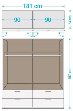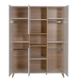Armoire 4 Portes Mélaminé Blanc Et Pieds Hêtre Massif Nalice