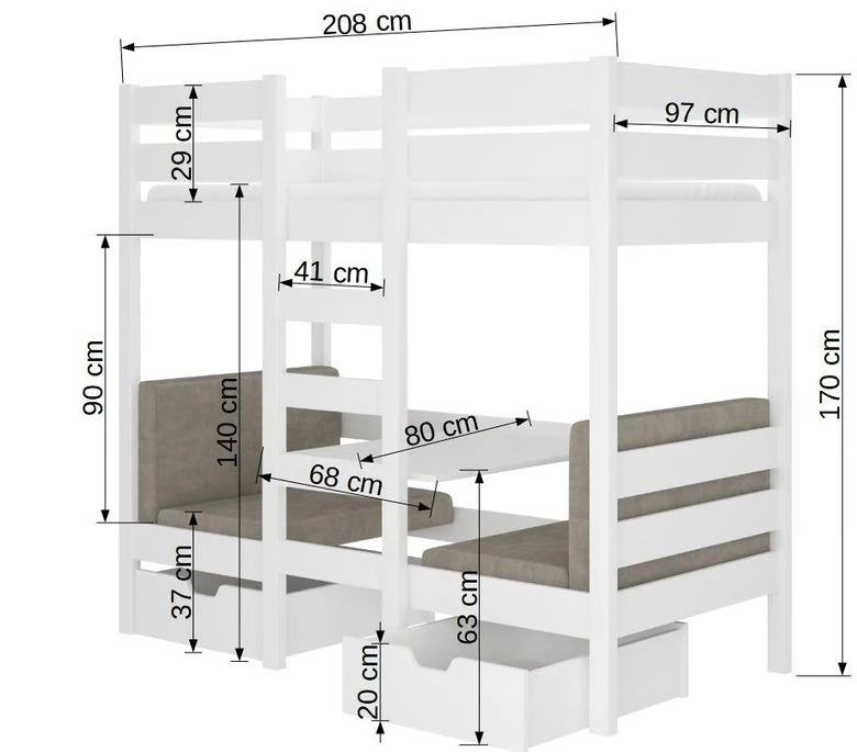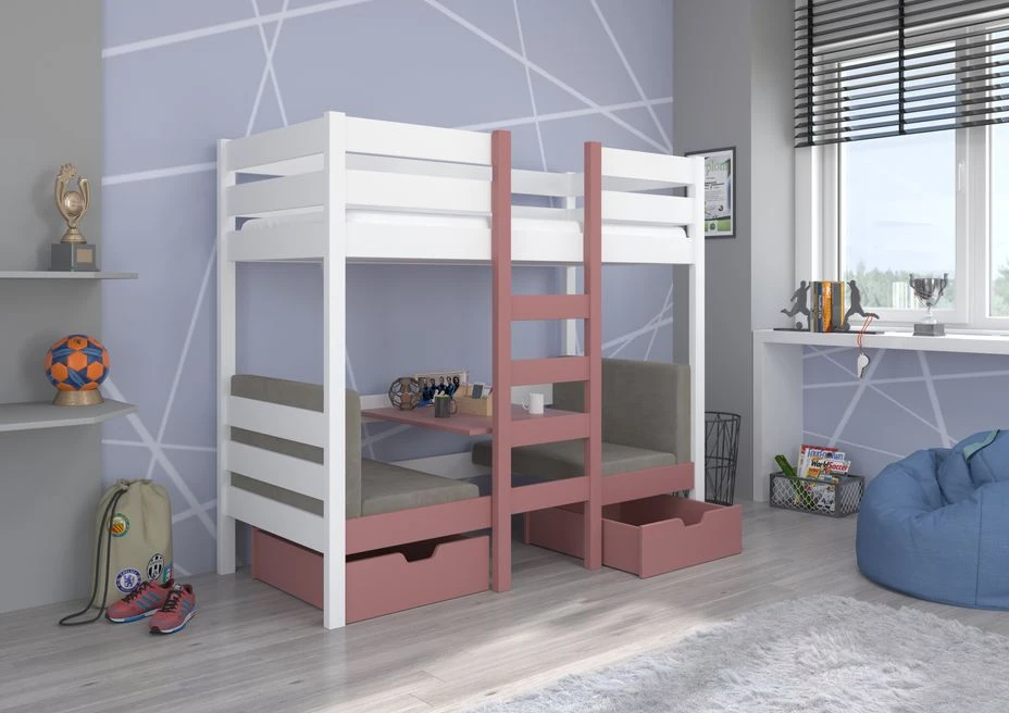 La polyvalence est l’un des atouts majeurs de notre lit enfant. En plus de l’espace de couchage confortable à l’étage, le lit dispose d’une fonction innovante au niveau inférieur. Le parties inférieure est divisé en quatre parties pratiques, offrant la possibilité de le transformer en une table et deux fauteuils séparés avec dossier. C’est l’endroit idéal pour que votre enfant puisse étudier, jouer ou se détendre en toute commodité.