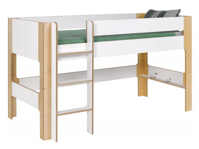 Fait en bois MDF blanc et dĂ©cor bouleau clair, sa structure est robuste et durable, vous pouvez d’abord le monter en lit simple sans les rehausses mi-hauteur.