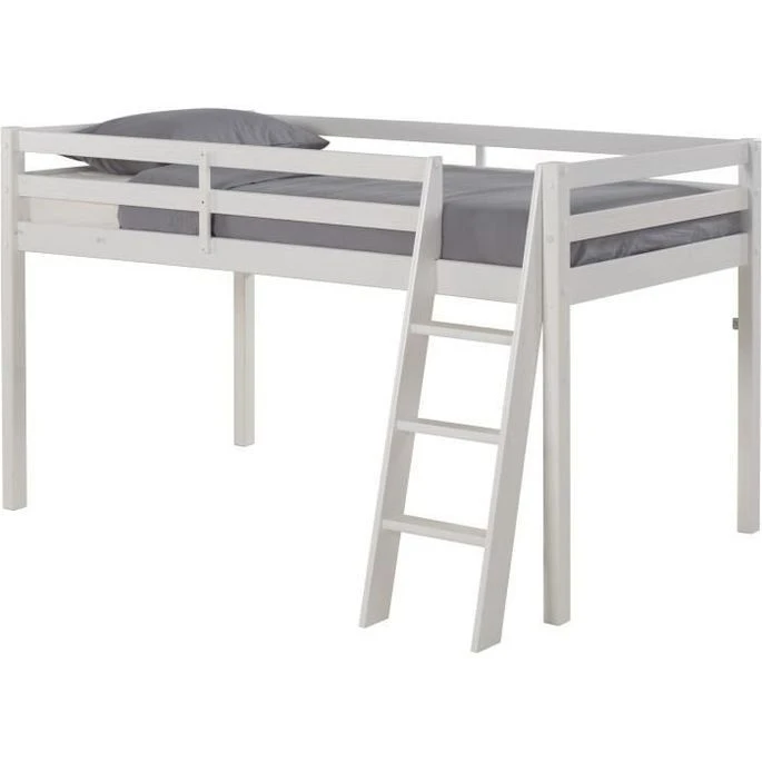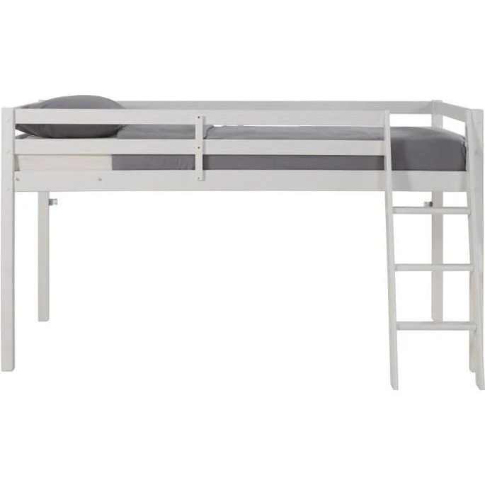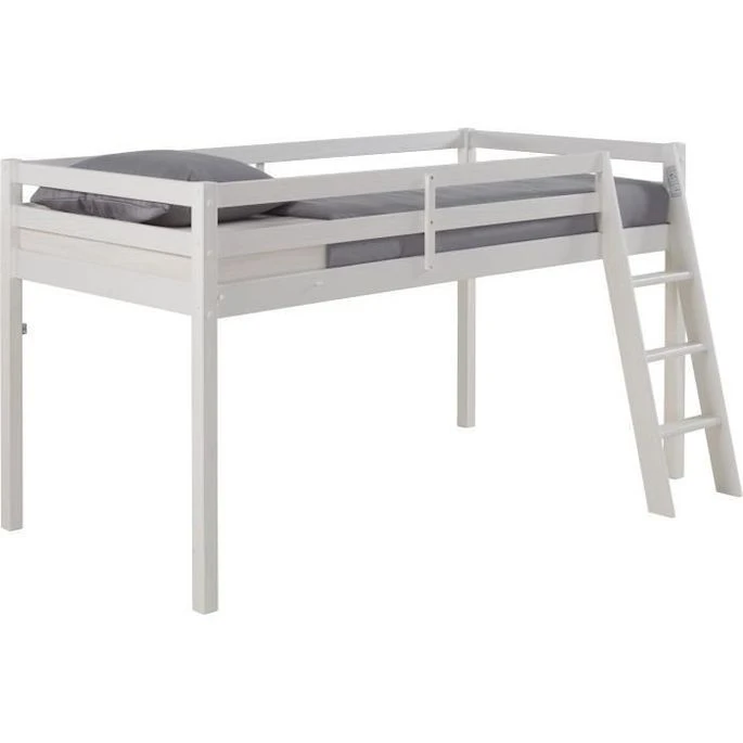 Lit Mi-hauteur Enfant- Bois Pin Massif – Naturel – Sommier Inclus – 90 X 190 Cm – PINKIE