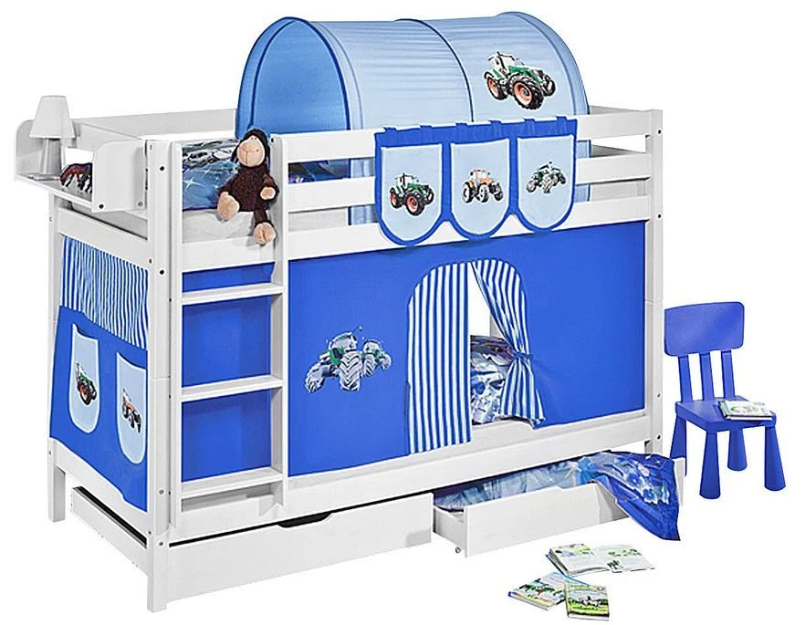 Lit mezzanine avec protection contre les chutes et échelle conformément aux normes EN 747 relatives aux lits mezzanines et aux lits superposés pour enfants.