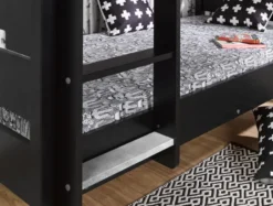 Le lit dispose de trois niveaux, ce qui permet d’optimiser l’espace disponible en hauteur. Chaque niveau est équipé d’un sommier à lattes qui offre un excellent confort de couchage. Les barrières de sécurité sur les côtés du lit assurent la sécurité des enfants et leur permettent de dormir en toute tranquillité.