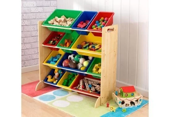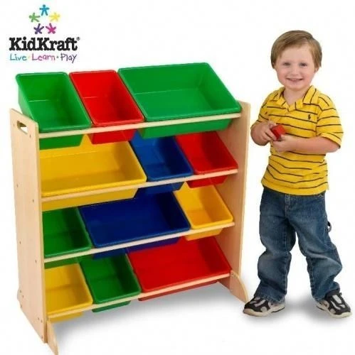 12 bacs de rangement en plastique – trois rouges, trois bleus, trois jaunes et trois verts Les bacs sont tous interchangeables